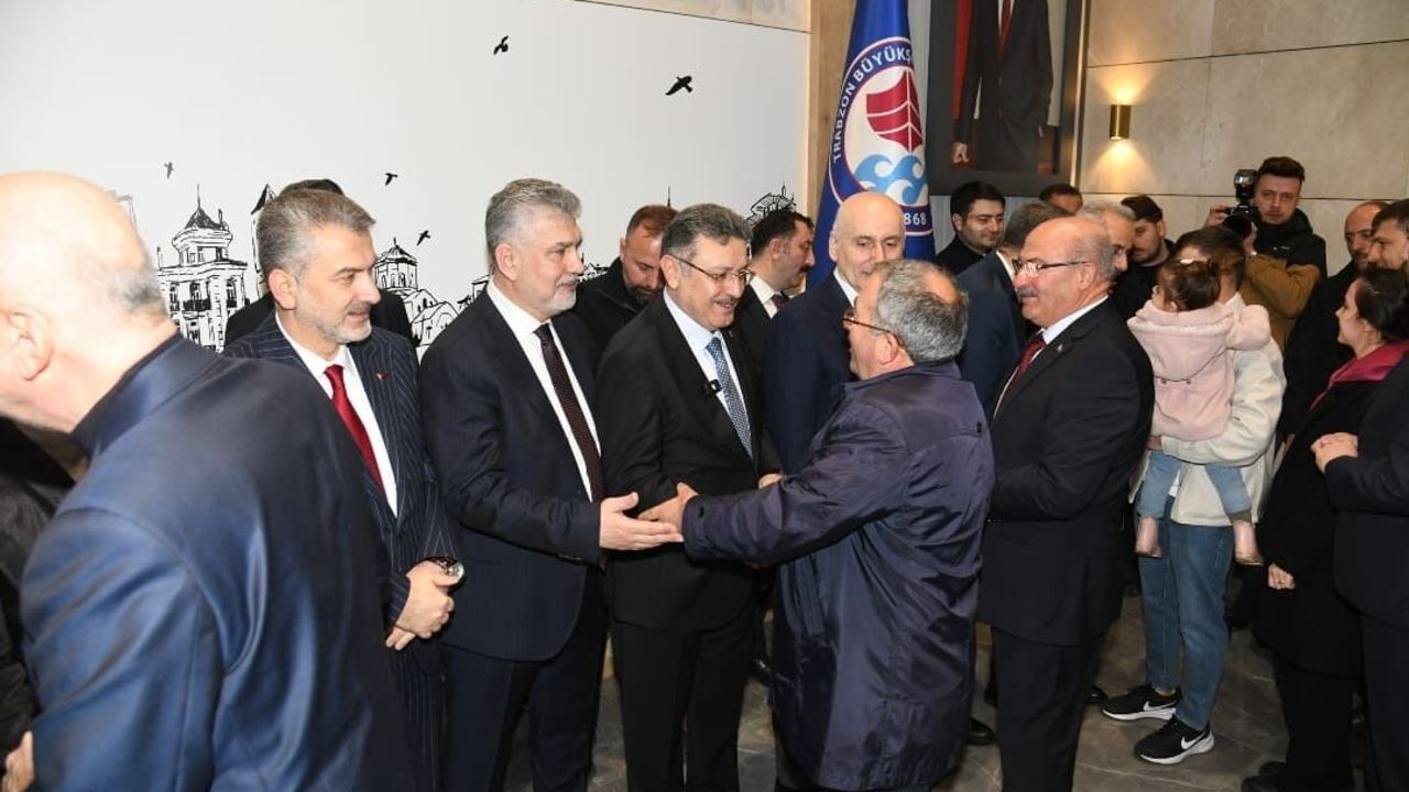 Trabzon Büyükşehir Belediyesi’ndeki bayramlaşma törenine, şehrin siyasi, askeri ve sivil toplum dinamiklerinin tam kadro katılımı dikkat çekti. Törende Trabzon Valisi Tahir Şahin, önceki dönem Ulaştırma ve Altyapı Bakanı, TBMM Bayındırlık, İmar, Ulaştırma ve Turizm Komisyonu Başkanı ve Trabzon Milletvekili Adil Karaismailoğlu, Trabzon Milletvekili Yılmaz Büyükaydın, Trabzon İl Jandarma Komutanı Tuğgeneral Bahattin Murat Yakın, AK Parti Trabzon İl Başkanı Sezgin Mumcu, önceki dönem Trabzon milletvekilleri Salih Cora, Ayşe Sula Köseoğlu ve Bahar Ayvazoğlu, İl Kadın Kolları Başkanı Ayfer Cihan, Ortahisar İlçe Başkanı Seyit Hisoğlu, ilçe belediye başkanları, siyasi parti ve sivil toplum kuruluşlarının temsilcileri, kamu kurum müdürleri, mahalle muhtarları ve belediye personeli hazır bulundu.
