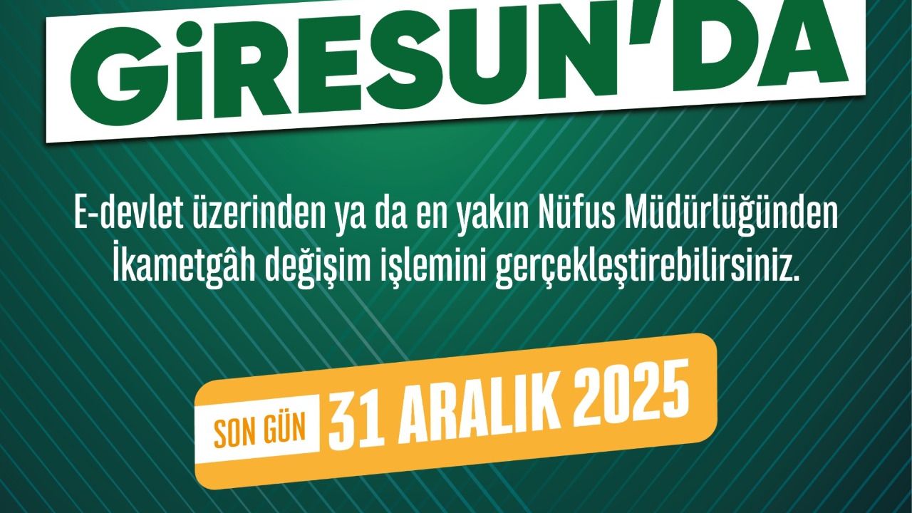 Başkan Köse, tüm Giresunluları 31 Aralık 2025 tarihine kadar ikametgâh işlemlerini tamamlamaya davet etti. Kentin geleceğinin, nüfusun doğru şekilde tespit edilmesine bağlı olduğunu belirten Köse, “Gelin, hep birlikte yaşadığımız bu güzel şehri daha ileriye taşıyalım” ifadeleriyle çağrısını tamamladı.