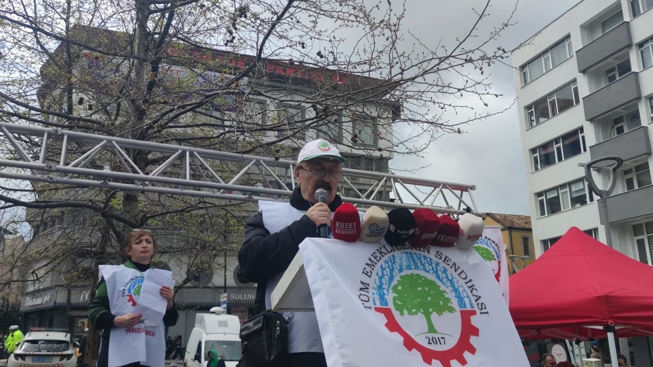 Tüm Emekliler Sendikası Trabzon Şubesi adına açıklama yapan Fikret Aşçıoğlu, emeklilerin yaşadığı sefalete dikkat çekti. Aşçıoğlu, “Kapitalist sistem ve yerli işbirlikçileri yoksul kitleleri kontrol altına almayı planlarken korku salıyor. Ama öksürükle yoksulluk gizlenemez” dedi. 2018’de ilk bayram ikramiyesinin 1000 TL olduğunu ve o dönem 200 dolar alındığını hatırlatan Aşçıoğlu, “2026’da verilen 4000 TL ile ancak 90 dolar alınabiliyor. Sadaka diye verdikleri bayram ikramiyesinden bile 110 dolar çaldılar” ifadelerini kullandı.