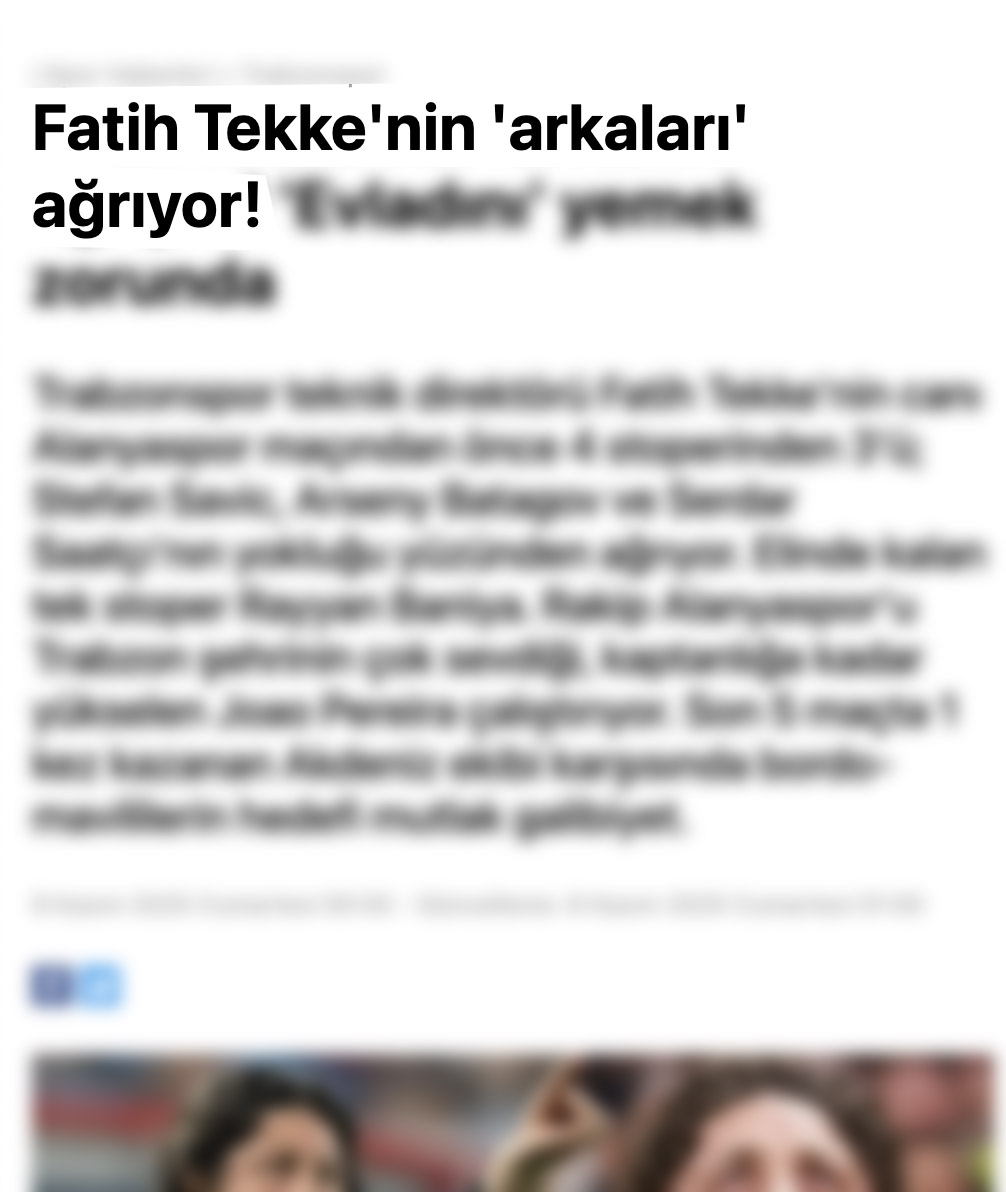 Trabzonspor Teknik Direktörü Fatih Tekke’ye yönelik ulusal yayın yapan bir medya kuruluşunun kullandığı “arkaları ağrıyor” başlıklı sözde haber, dikkat çekti.