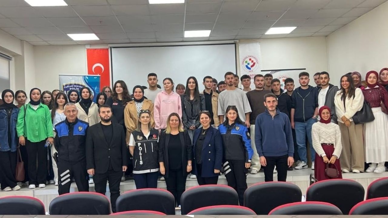Trabzon İl Emniyet Müdürlüğü, Trabzon Üniversitesi öğrencileriyle bir araya gelerek KADES projesi, 112 Acil Çağrı Merkezi, telefon ve internet üzerinden gerçekleşen dolandırıcılık vakaları hakkında bilgilendirme etkinliği düzenledi. TDP Şube Müdürlüğü ekipleri, öğrencilerin güvenliği için önemli bilgiler verirken, konularla ilgili bilgilendirici broşürler de dağıttı. Etkinlik, öğrencilerin hem çevrimiçi hem de günlük yaşamda karşılaşabilecekleri riskler konusunda farkındalık kazanmalarını amaçladı. Öğrencilerin soruları yanıtlanarak aktif katılım sağlandı ve uygulamalı bilgilendirme sunumları gerçekleştirildi.