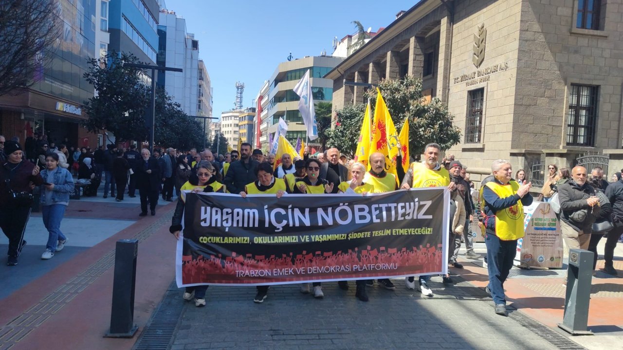 Trabzon’da düzenlenen yürüyüş, geniş katılımıyla dikkat çekti. Emek ve Demokrasi Platformu bileşenleri, sendikalar ve çok sayıda vatandaşın katıldığı eylemde, “Şiddete karşı yaşam hakkı” sloganı öne çıktı. Katılımcılar, özellikle son dönemde okullarda yaşanan saldırıların toplumda derin bir endişe yarattığını ifade etti.