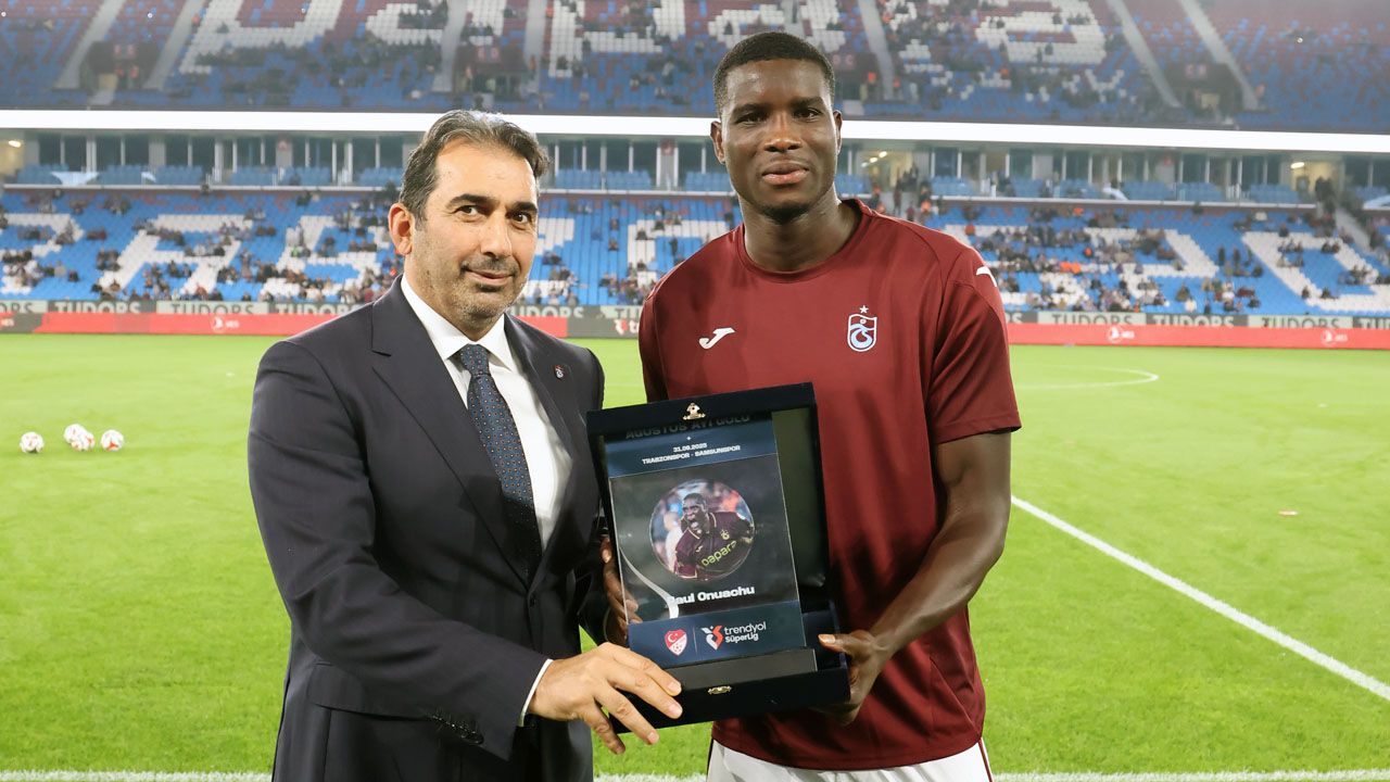 Trabzonspor, Kayserispor karşılaşması öncesinde futbolcusu Paul Onuachu’ya ödülünü takdim etti. Kulüp Asbaşkanı Zeyyat Kafkas, Onuachu’ya plaketini verirken yaptığı konuşmada, “Takımımıza katkın ve attığın bu müthiş gol için seni tebrik ediyoruz. Bu ödül, hem senin hem de Trabzonspor’un başarısını gösteriyor” dedi. Onuachu ise ödülünü alırken, “Böylesi bir ödül almak büyük bir motivasyon kaynağı. Takım arkadaşlarımın desteği olmadan bunu başaramazdım” ifadelerini kullandı.