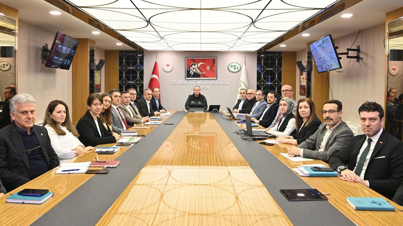 Trabzon ve çevre illerin su kaynakları yönetiminde söz sahibi olan DSİ 22. Bölge Müdürlüğü'nde 2026 yılı mesaisi erken başladı. Bölge Müdürü Fatih Kişi, Ankara'da DSİ Genel Müdürlüğü'nde yapılacak olan "2026 Yılı Takdim ve Bütçe Toplantısı" öncesi hazırlık toplantısı düzenledi. Bölge Müdür Yardımcıları ve Şube Müdürlerinin katılımıyla gerçekleştirilen toplantıda, tamamlanan, devam eden ve planlanan yatırımlar detaylı şekilde ele alındı. Bölgenin su altyapısı ve tarımsal sulama projeleri açısından büyük önem taşıyan toplantıda, 2026 hedefleri için yol haritası belirlendi.