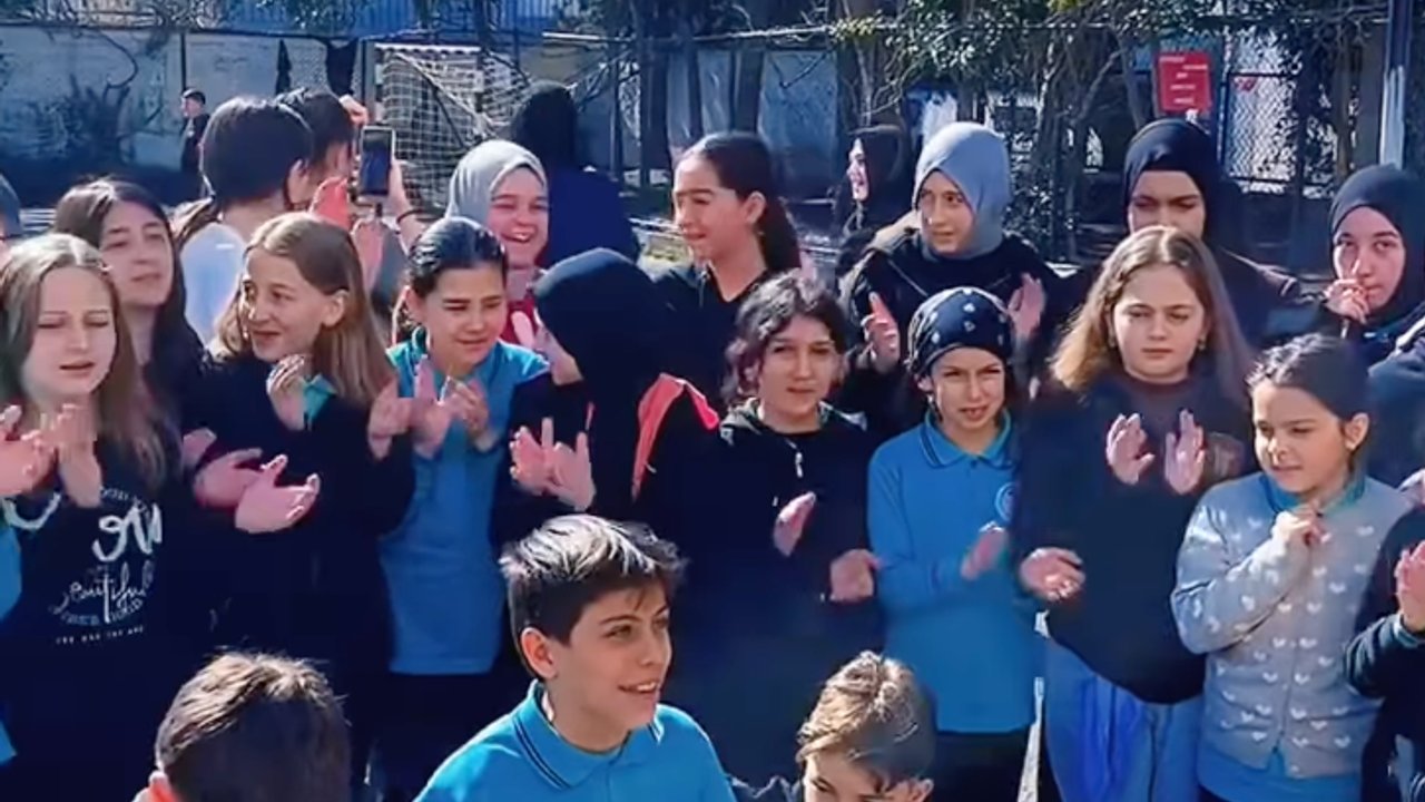 Teneffüs saatinde bir araya gelen öğrenciler, Ramazan ayının ruhuna uygun ilahiler seslendirdi. Okul bahçesinde oluşan kalabalık kısa sürede büyürken, ilahilerin sözleri hep bir ağızdan söylendi. Bu anlamlı etkinlik, Ramazan ayının sadece büyükler için değil, çocuklar için de ne kadar özel olduğunu bir kez daha gösterdi.
