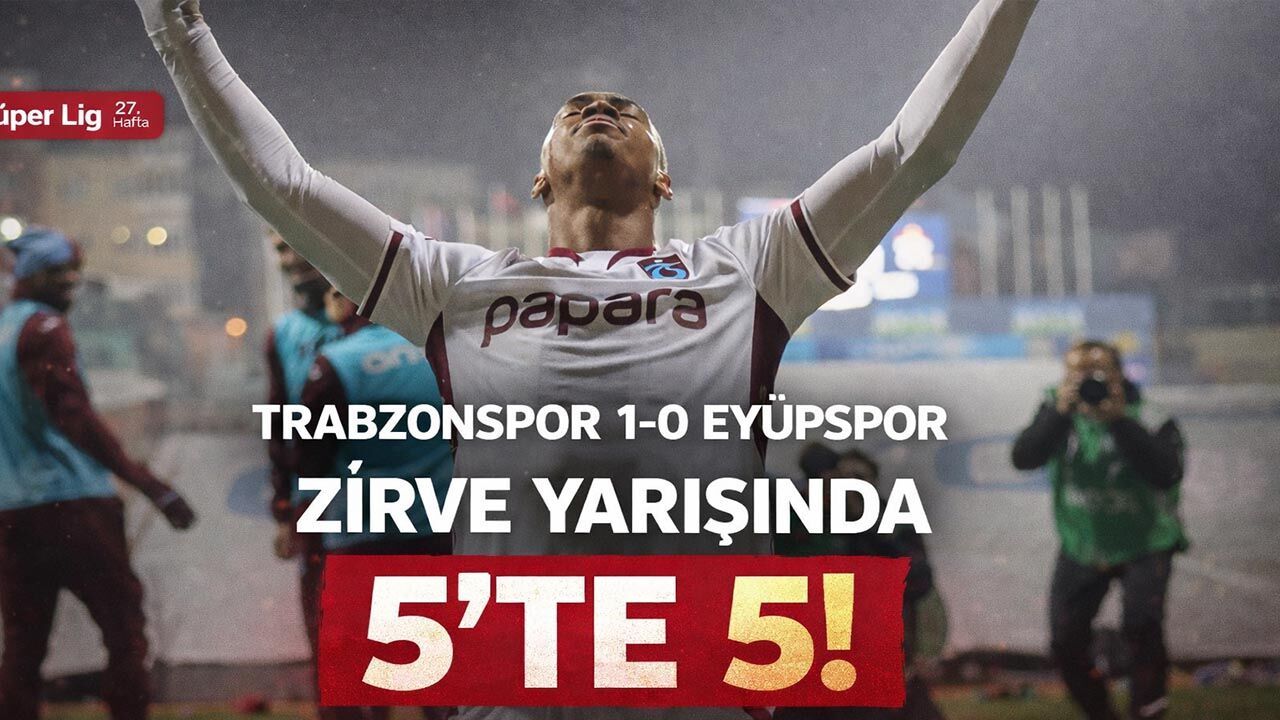 Trabzonspor, Süper Lig’in 27. haftasında deplasmanda Eyüpspor’u 1-0 mağlup ederek üst üste beşinci galibiyetini aldı. Bordo-Mavililer, özellikle ikinci yarıda bulduğu golle zorlu deplasmandan üç puan çıkarmayı başardı. İlk yarıda etkisiz bir görüntü sergileyen Karadeniz temsilcisi, ikinci yarıda yaptığı hamlelerle oyuna ağırlığını koydu. Felipe Augusto’nun golüyle gelen galibiyet, Trabzonspor’u 60 puana taşıdı ve zirve yarışındaki iddiasını güçlü şekilde sürdürmesini sağladı. Kritik Galatasaray maçı öncesi gelen bu galibiyet, takımın moralini de yükseltti.