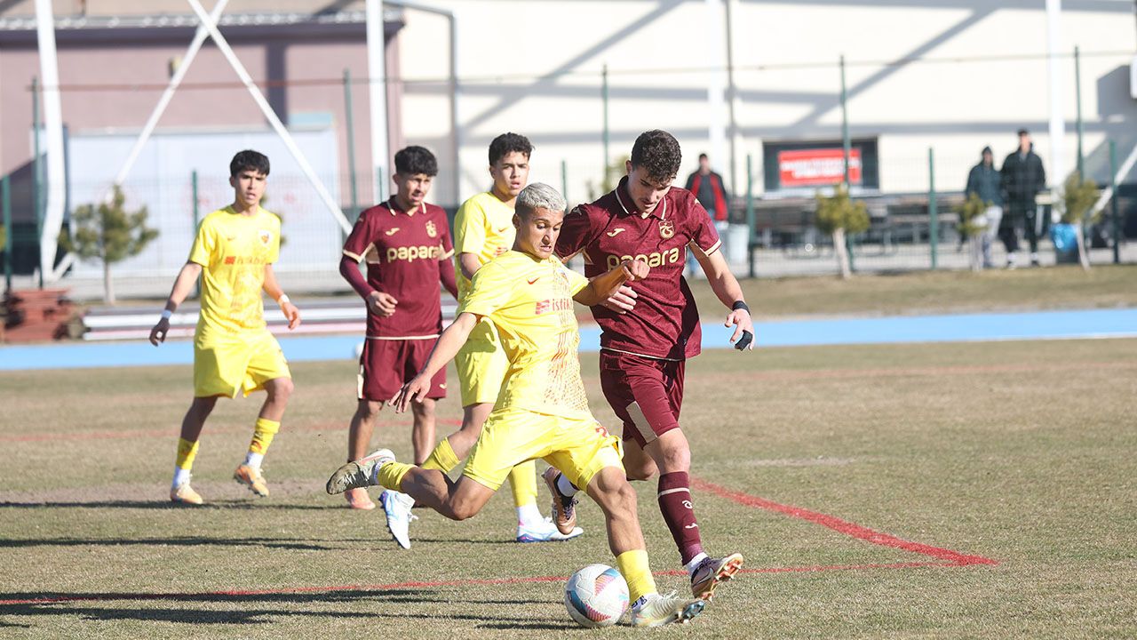Trabzonspor U19 takımı, U19 PAF Ligi’nin 25. haftasında deplasmanda Zecorner Kayserispor U19 ile karşı karşıya geldi. Kayseri Atatürk Spor Kompleksi’nde oynanan mücadele büyük bir çekişmeye sahne olurken karşılaşma 2-2’lik beraberlikle sona erdi. Bordo-mavili gençler, zorlu deplasmanda iki kez fileleri havalandırarak önemli bir puan almayı başardı. Trabzonspor U19’un gollerini ilk yarıda Mümin Barış Nazlı ve Ahmet Cemil Güren kaydetti. Tempolu geçen mücadelede iki takım da galibiyet için sahada büyük mücadele ortaya koydu. Karşılaşmanın sonunda taraflar sahadan birer puanla ayrılırken Trabzonspor U19 deplasmandan kritik bir puanla dönmüş oldu.